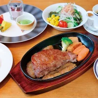 益子焼の大きなプレートにメインのおかず(お肉のプレート・お魚のプレート)と、地元野菜を取り入れたおかずを一緒に盛りつけて提供しています。生野菜サラダ(紫玉葱と麹を使った手作りドレッシング)、スイーツと飲み物が付いたデザートセットを付けられます。デザートは地元の果物を使った手作りです。プレートランチは限定につき、無くなり次第終了となります。